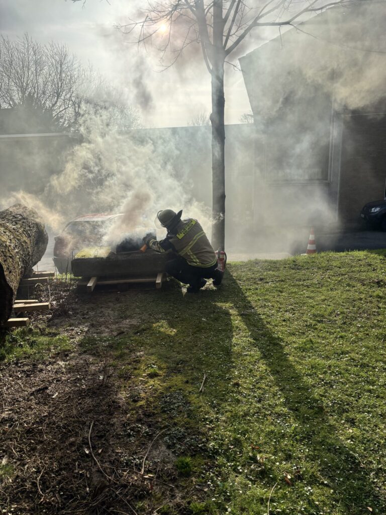 Zum Abschluss des Praktikums wurde es noch einmal besonders anschaulich. Bei einer Demonstration konnten die Schüler:innen beobachten, wie schnell sich ein Feuer ausbreiten kann. Anschließend erklärten die Feuerwehrkräfte verschiedene Arten von Feuerlöschern, bevor die Schüler:innen selbst ausprobieren durften, ein Feuer zu löschen.