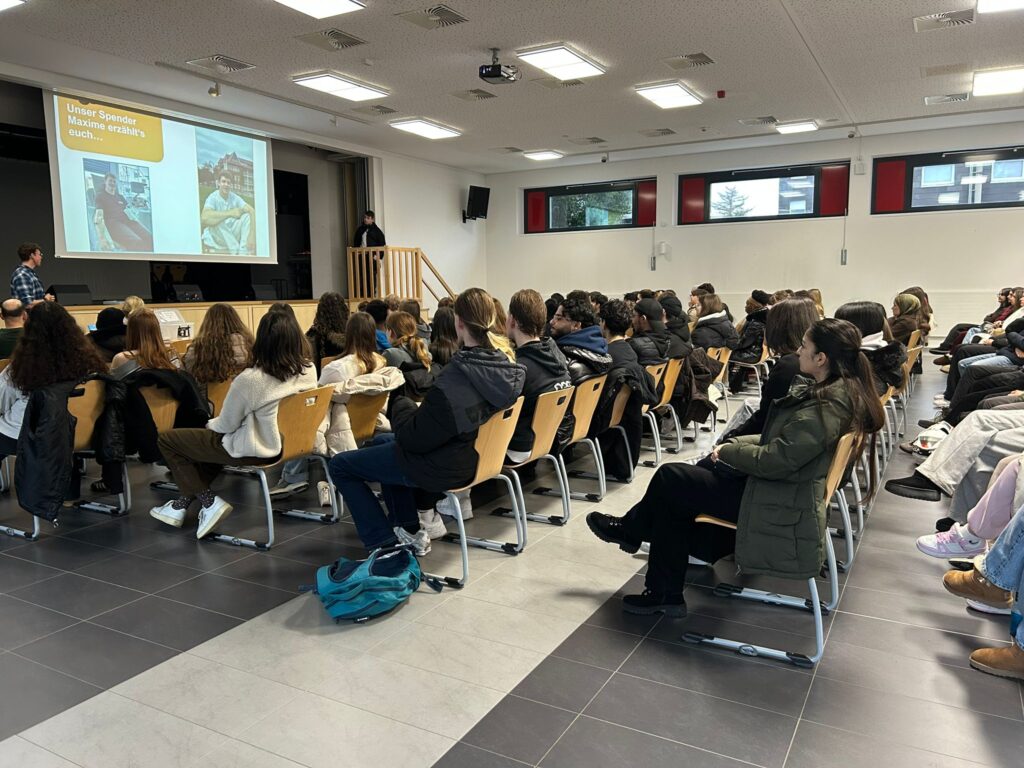 Aus diesem Grund fand heute parallel zu den Aktionen zum Weiße-Rose-Tag ein Vortrag im Forum für die gesamte Oberstufe statt. Die Schüler:innen wurden über die Möglichkeiten einer Stammzellspende, die medizinischen Hintergründe sowie die Bedeutung junger Spender:innen informiert. Anschließend konnten sich interessierte Oberstufenschüler:innen direkt registrieren – und diese Möglichkeit wurde rege angenommen.