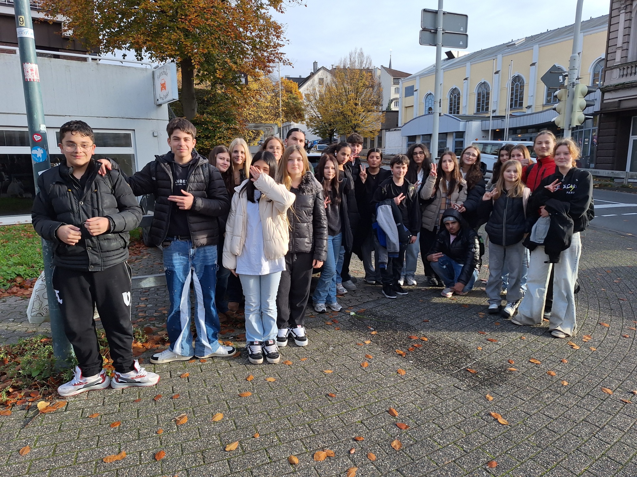 Am 10. November 2025 nahmen Schüler:innen der Jahrgangsstufe EF sowie Mitglieder der Weiße-Rose-AG am Gedenken an die Novemberpogrome teil. Die Veranstaltung begann am Standort der ehemaligen Solinger Synagoge, die in der Reichspogromnacht zerstört wurde. Nach einem Beitrag des Oberbürgermeisters und des Vorsitzenden der jüdischen Kultusgemeinde folgte eine Präsentation von Schüler:innen der Geschwister-Scholl-Schule Schwertstraße zur heutigen Bedeutung des Bunkers, der sich dort befindet