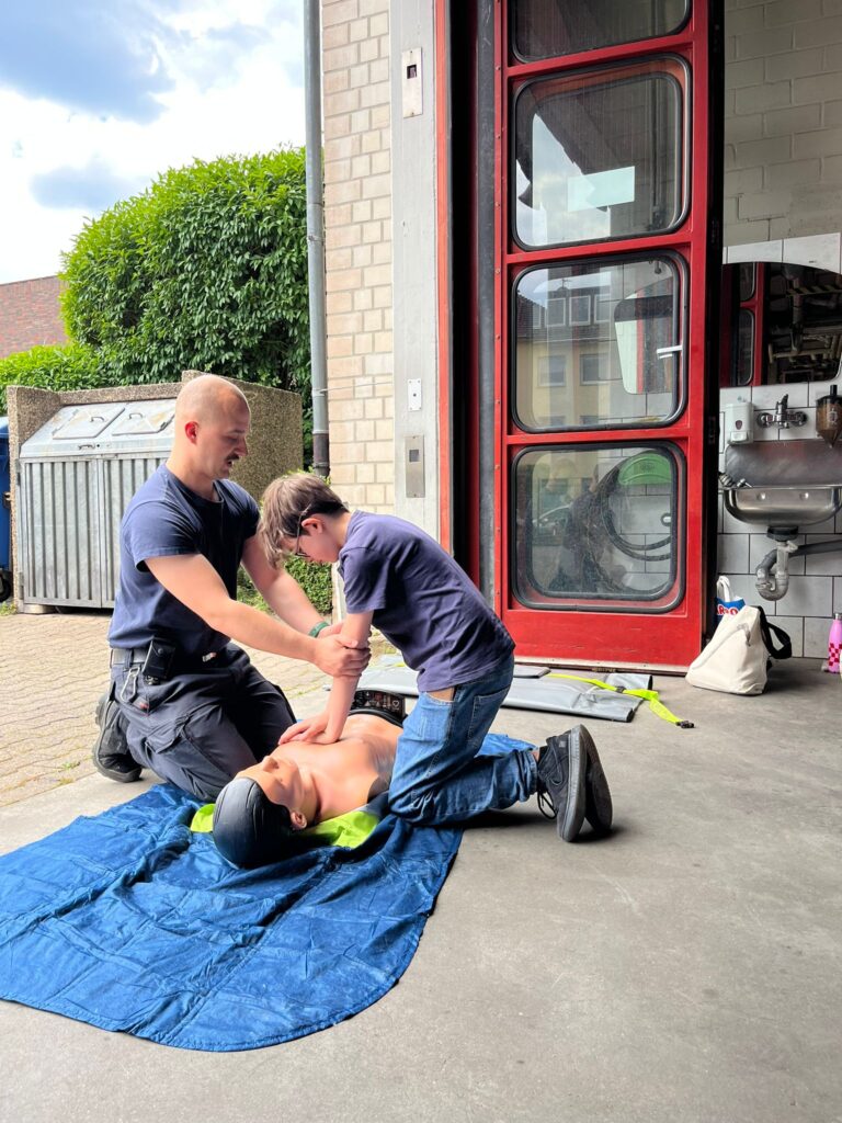 Die Schüler:innen der Erste-Hilfe-AG unserer Schule haben heute gemeinsam mit ihrer Lehrerin Frau Schmalz einen spannenden und lehrreichen Ausflug zur Feuerwehr Solingen unternommen.
