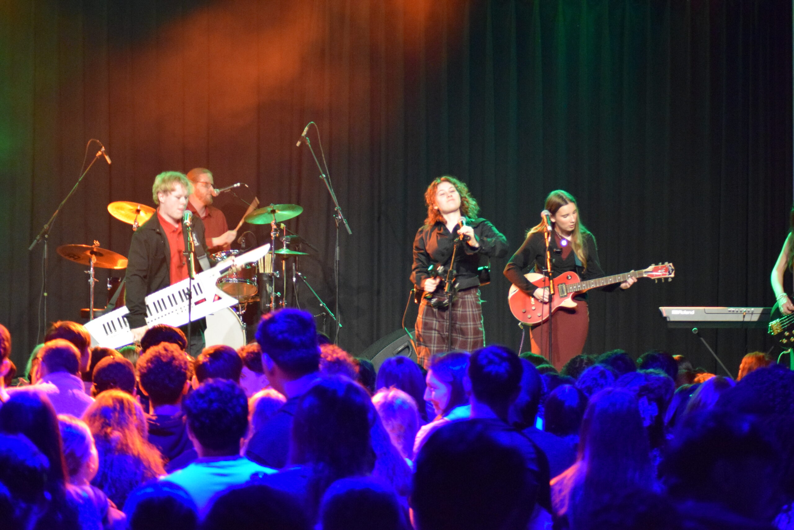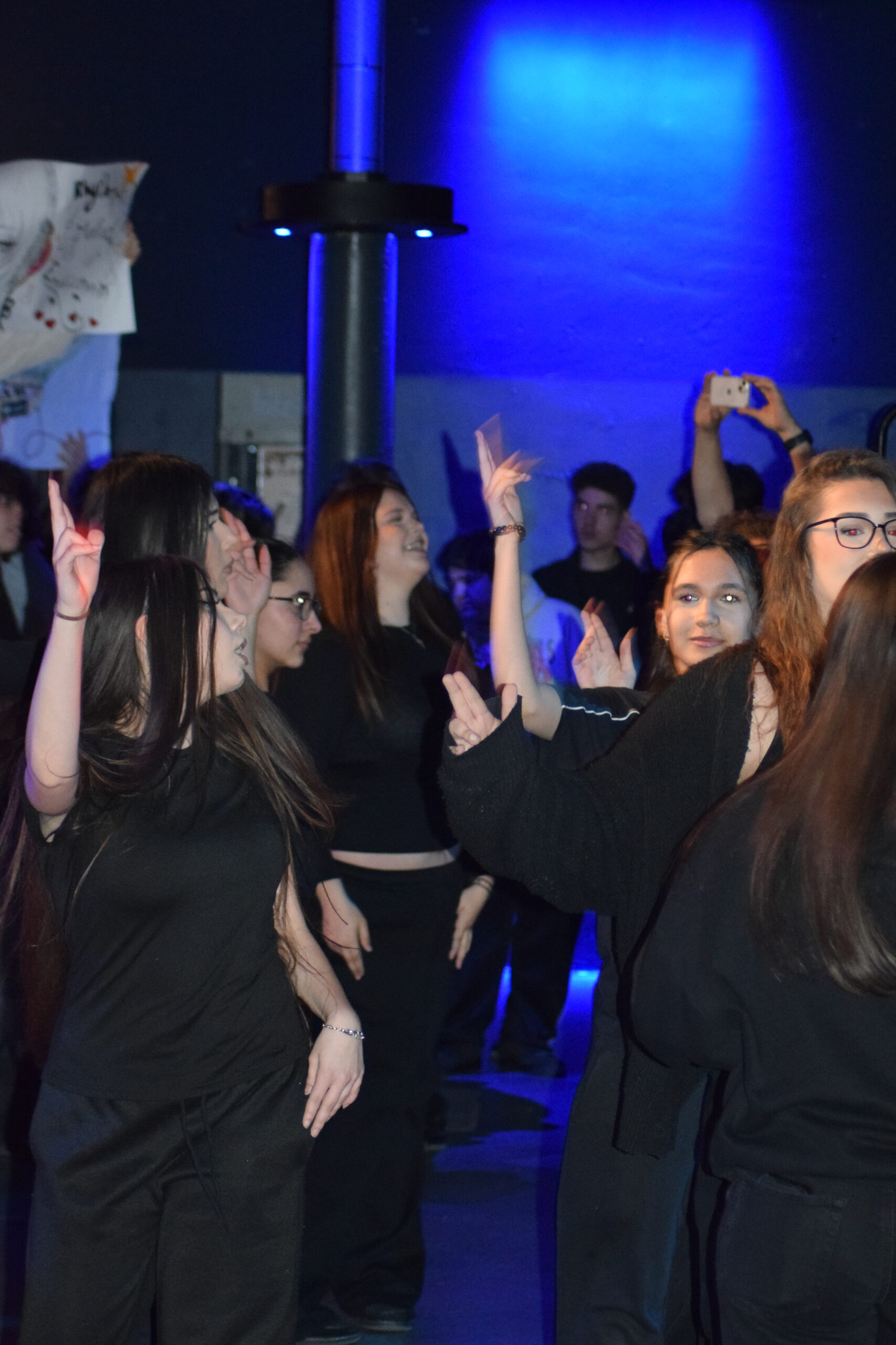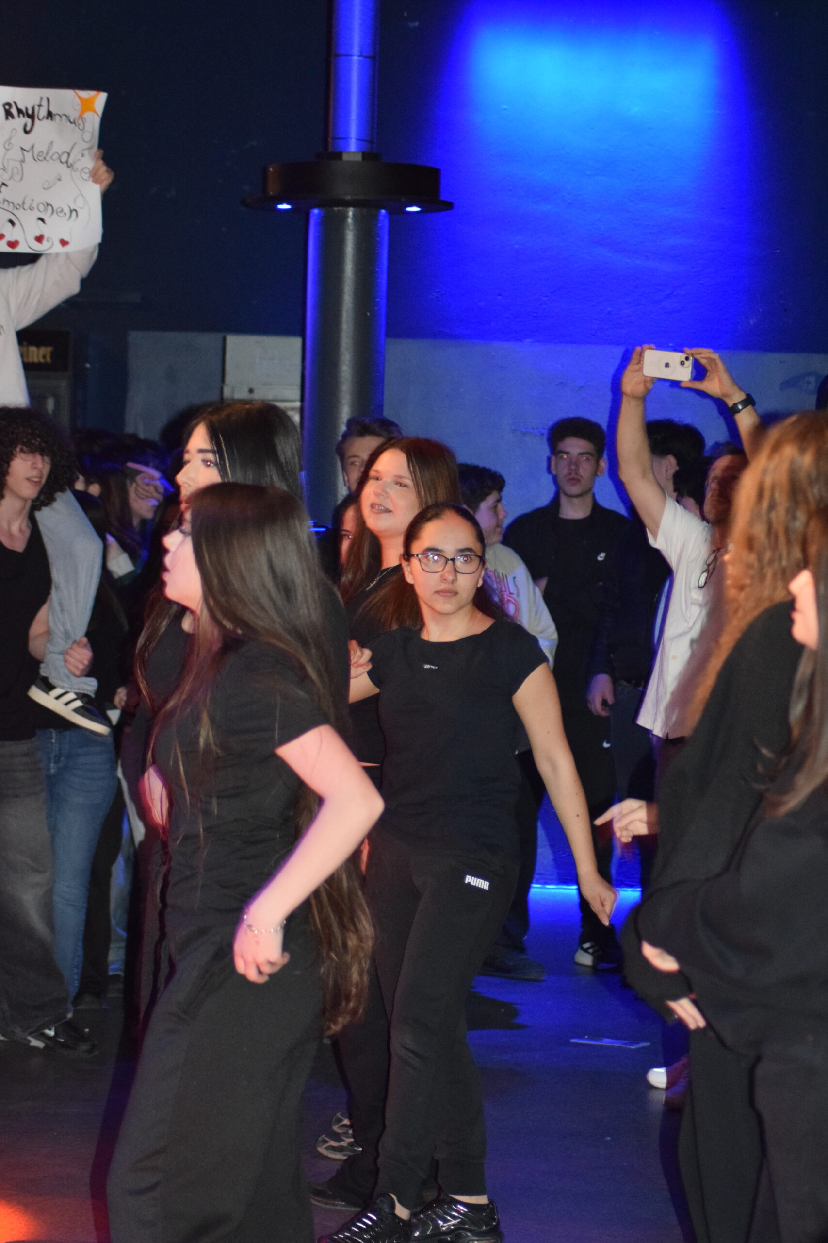 Den Auftakt machte die Band „Out of Time“, die mit Songs wie „Teenage Dirtbag“ direkt für Stimmung sorgte und die Bühne rockte. Darauf folgte der Auftritt der „Soundtrack Society“, die – wie der Name schon verrät – bekannte Filmmusik interpretiert. Ein besonderes Highlight war die Darbietung von „Ghostbusters“: Unterstützt durch einen DUG-Kurs mit tänzerischen Einlagen und zahlreiche, von Schüler:innen gestaltete Plakate entstand eine mitreißende Gesamtperformance.