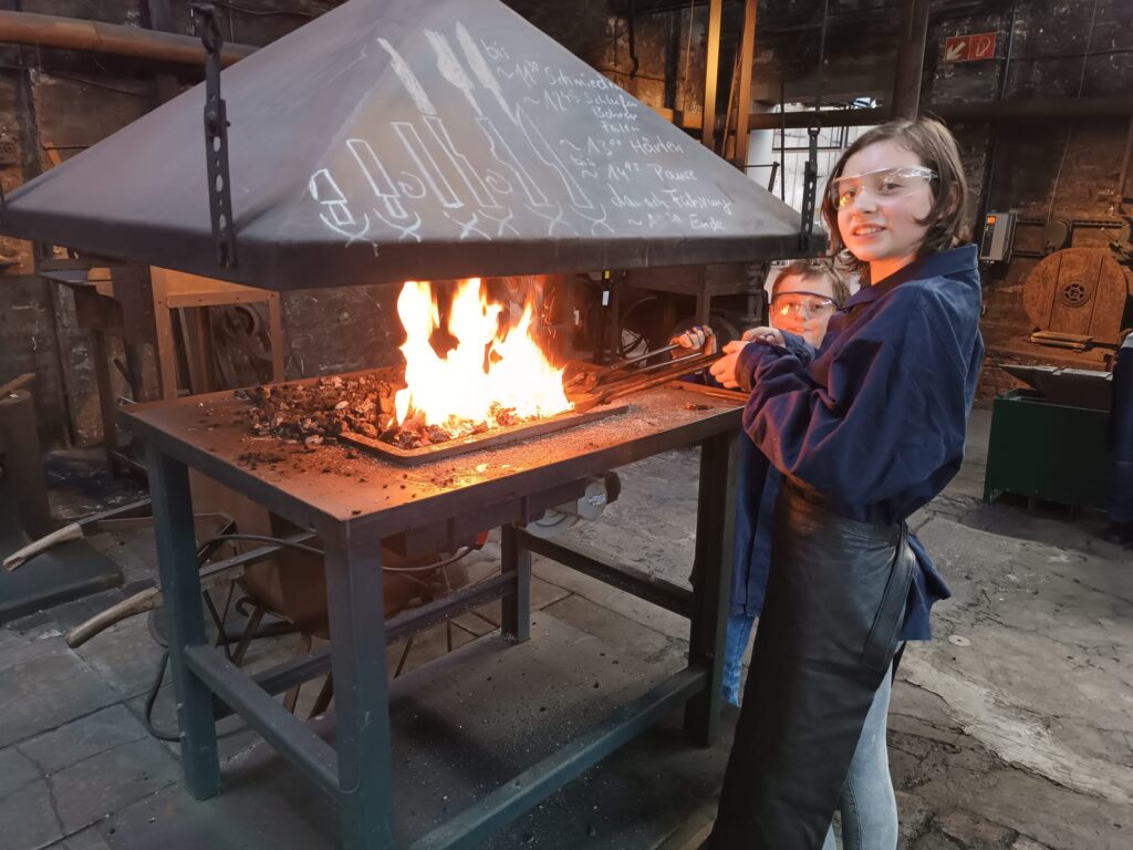 Besonders stolz sind wir auf die Kooperationen mit außerschulischen Partnern, die unseren Schüler:innen immer wieder einzigartige Lernmöglichkeiten eröffnen. Ein herausragendes Beispiel ist die Schmiede-AG, die in Zusammenarbeit mit dem Industriemuseum stattfindet. Hier können Kinder traditionelle Schmiedekunst hautnah erleben und selbst aktiv werden.