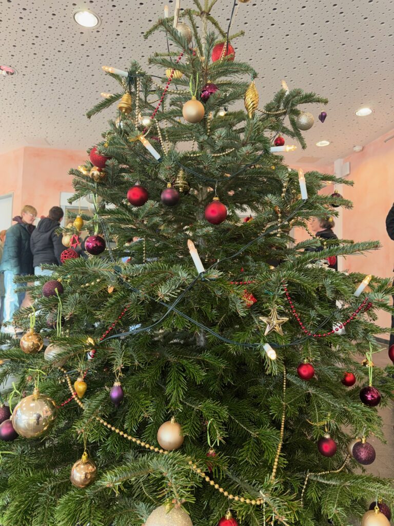 Wie in jedem Jahr schmücken auch in der diesjährigen Adventszeit wieder zwei Weihnachtsbäume unsere Schule. An unseren beiden Standorten steht jeweils ein festlich geschmückter Baum in der Mensa und sorgt für eine vorweihnachtliche Atmosphäre.