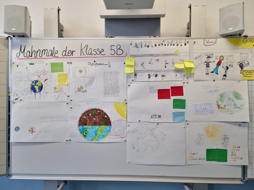 So setzte sich die Klasse 5b intensiv mit der Geschichte der Weißen Rose auseinander und diskutierte, warum Erinnern und Stellung beziehen auch heute noch von großer Bedeutung sind. In diesem Zusammenhang wurde auch das Solinger Mahnmal thematisiert und gemeinsam überlegt, welche Funktion Mahnmale erfüllen und wie sie zum Nachdenken anregen können. Im Anschluss wurden die Schüler:innen selbst kreativ und entwickelten in Gruppen eigene Entwürfe für Mahnmale zu Themen, die sie persönlich bewegen. So entstanden eindrucksvolle Arbeiten zu Mobbing und dessen möglichen Folgen wie Suizid, zur Umweltzerstörung, zu den Auswirkungen von Kriegen sowie zum Thema Kindesmissbrauch. Mit viel Ernsthaftigkeit und Einfühlungsvermögen zeigte die 5b, wie reflektiert und verantwortungsbewusst junge Menschen gesellschaftlich relevante Themen bearbeiten können.